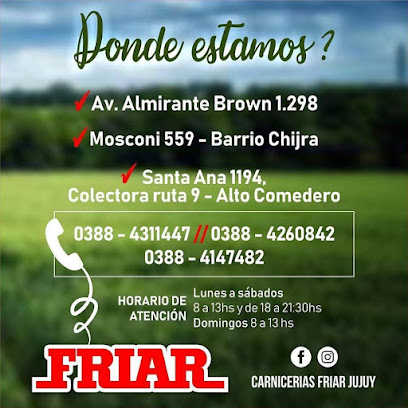 Con su ubicación en Santa Ana 1194, Carnicerías Friar Jujuy se ha convertido en uno de los destinos favoritos de los amantes de la carne en la ciudad. Su especialidad en carnes frescas y de alta calidad lo distingue de otros establecimientos similares.