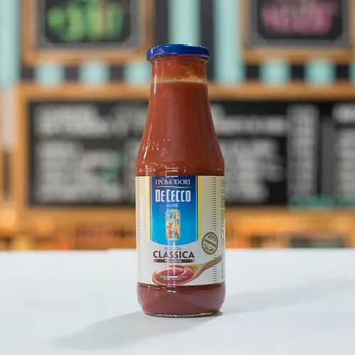 DESCRIPCIÓN:¿Eres un amante de la cocina italiana? ¿Te encanta disfrutar de una buena pasta con salsa de tomate? Entonces, déjame presentarte el auténtico sabor de Italia: Passata De Cecco. La Passata Rustica de Cecco es una salsa de tomate italiana de la más alta calidad. Proveniente directamente de Italia, este producto es la receta original y tradicional utilizada en el país de la pasta. Imagina poder disfrutar de una pasta con el auténtico sabor italiano en la comodidad de tu hogar. Con la Passata De Cecco, esto es posible. Su textura suave y su sabor único te transportarán a las calles de Italia en cada bocado.¿Por qué conformarte con imitaciones cuando puedes tener lo auténtico? Solo los italianos saben cómo hacer una pasta verdaderamente deliciosa, y con la Passata De Cecco, podrás recrear ese sabor en tus propias recetas.Ya sea que prefieras una pasta clásica con salsa de tomate o quieras experimentar con otras combinaciones, la Passata De Cecco será tu aliado perfecto en la cocina. Su versatilidad te permitirá crear platos únicos y sabrosos que sorprenderán a tus invitados.No dejes pasar la oportunidad de probar la auténtica Passata De Cecco y descubrir el sabor de Italia en cada plato de pasta. ¡Tu paladar te lo agradecerá!