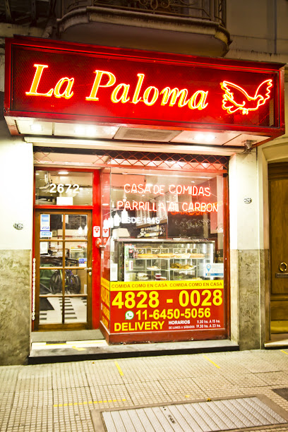 La Paloma Casa de Comidas es un restaurante para llevar ubicado en la ciudad de Buenos Aires, Argentina. Es conocido por ser especializado en parrilla al carbón y ofrece una variedad de opciones gastronómicas, como brunch, almuerzo, cena y postre.